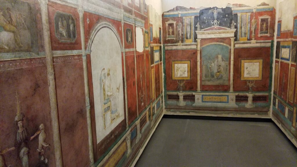 Two examples of rooms with frescoes. Note how the paintings are done in panels, often with faux architectural elements separating them.